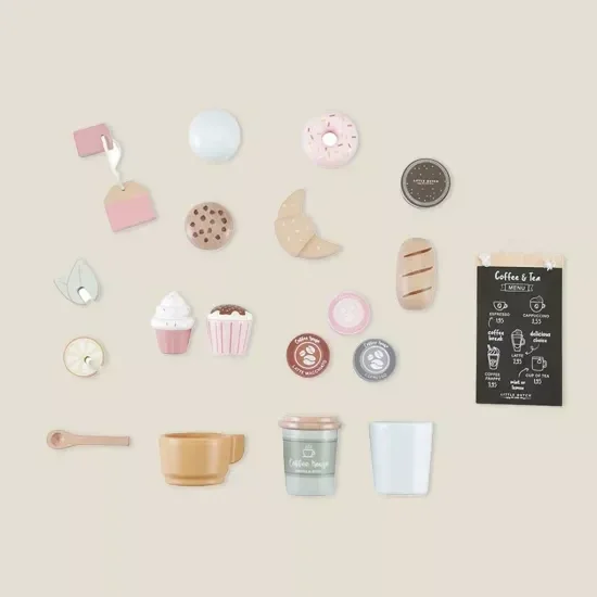 Koffie of thee? Wil je er een koekje of taartje bij? Met deze leuke houten Little Dutch koffiehoek heb je direct een heerlijke plek om te spelen. Word een echte barista en maak een lekkere kop cappuccino voor mama en papa met je eigen koffiemachine. Of serveer je liever koffie en thee in je eigen koffietentje met een menu vol lekkernijen?!
